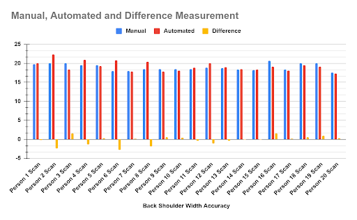 Scanned 20 people, got their manual measurements, and compared the differences with automated measurements obtained from 3D Measure Up.
