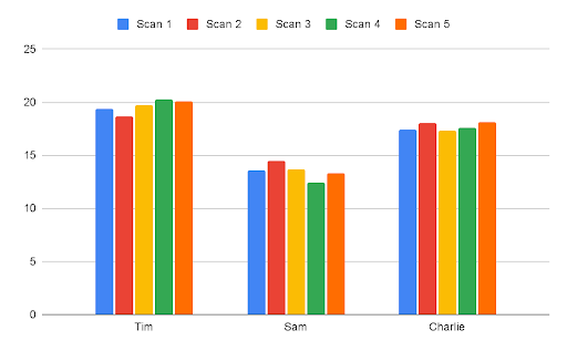 - The variations of the measurements across scans of the same person is within the tolerance limit.