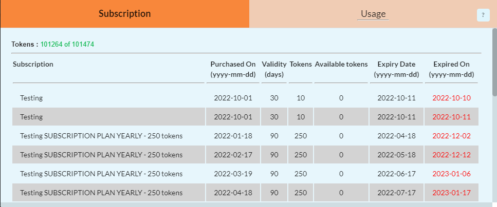 - By clicking the “Usage Details” button, you can view your subscription and token usage information.