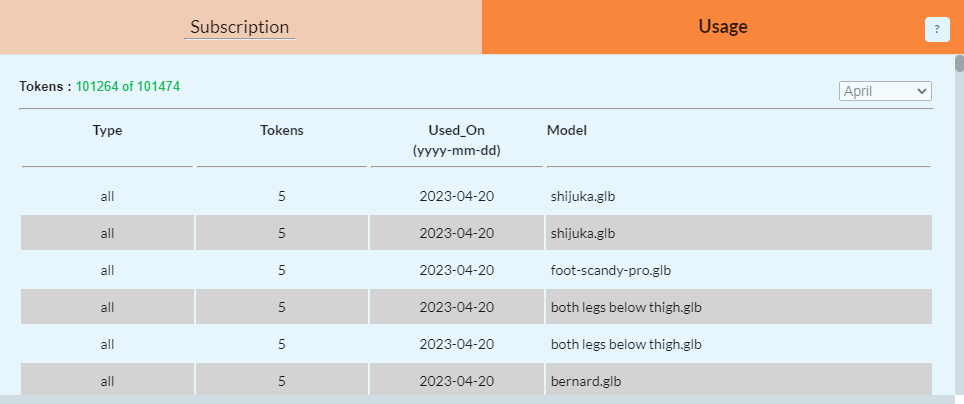 Maximize your token usage and subscription plan by utilizing the monitoring dashboard provided by 3D Measure Up web application.